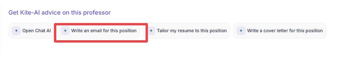 اگر قبلاً رزومهتان را در Kite AI آپلود کرده باشید، ایمیلهایتان شخصیتر میشوند — چون هوش مصنوعی بهصورت خودکار سوابق مرتبط شما با زمینهی پژوهشی استاد را برجسته میکند.
