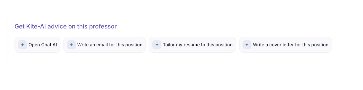 در پایین صفحهی موقعیت، در بخش “Get Kite-AI advice on this professor” چهار ابزار هوشمند وجود دارد.