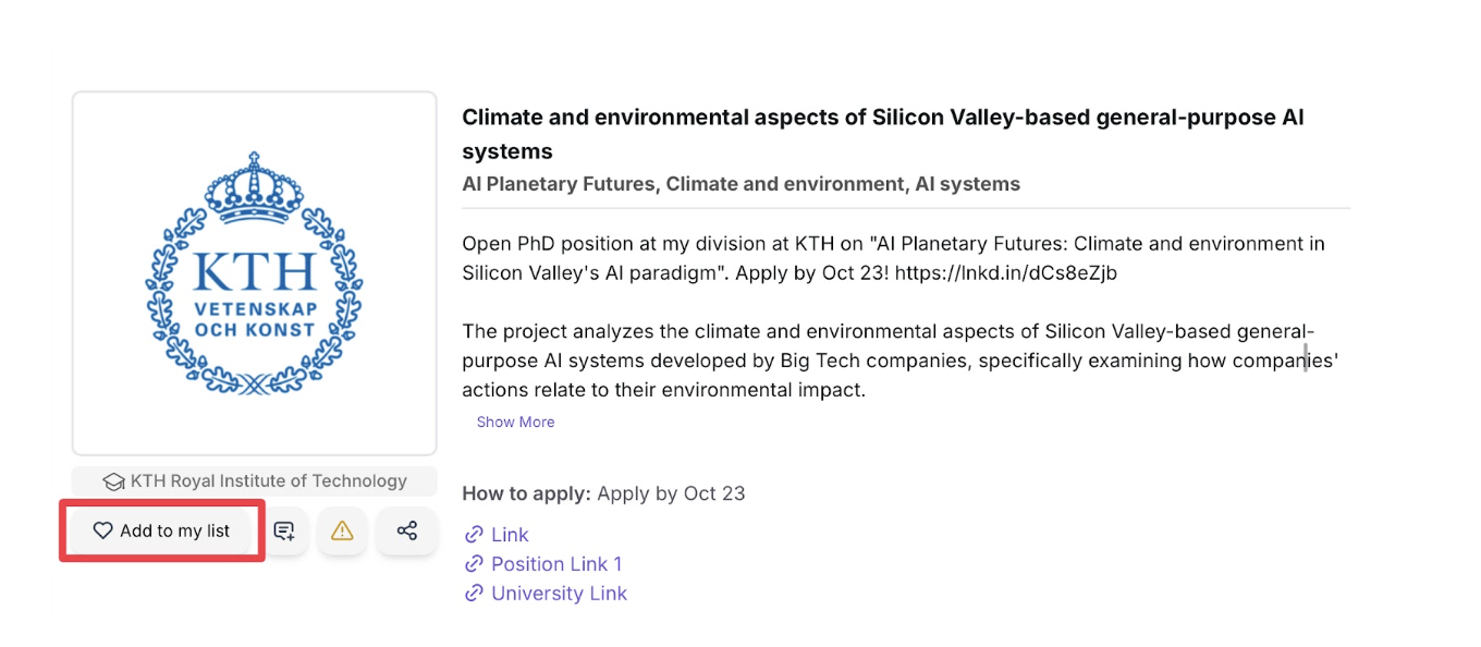 - Position Link (صفحهی رسمی موقعیت): شما را به وبسایت رسمی دانشگاه برای این فرصت دکترا هدایت میکند. در آنجا میتوانید جزئیات کامل پروژه، نوع تأمین مالی، شرایط پذیرش و نحوهی ارسال مدارک را ببینید.