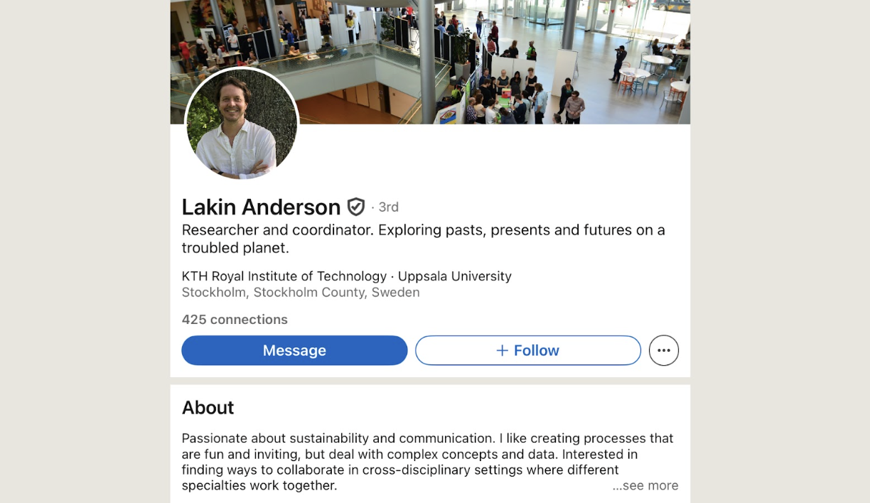 نکته: حتماً بخشهای Activity یا About را چک کنید — این کار کمک میکند پیامتان را شخصیتر بنویسید یا بفهمید استاد در حال حاضر روی چه پروژههایی کار میکند. حتی میتوانید با یک پیام کوتاه خودتان را معرفی کنید.