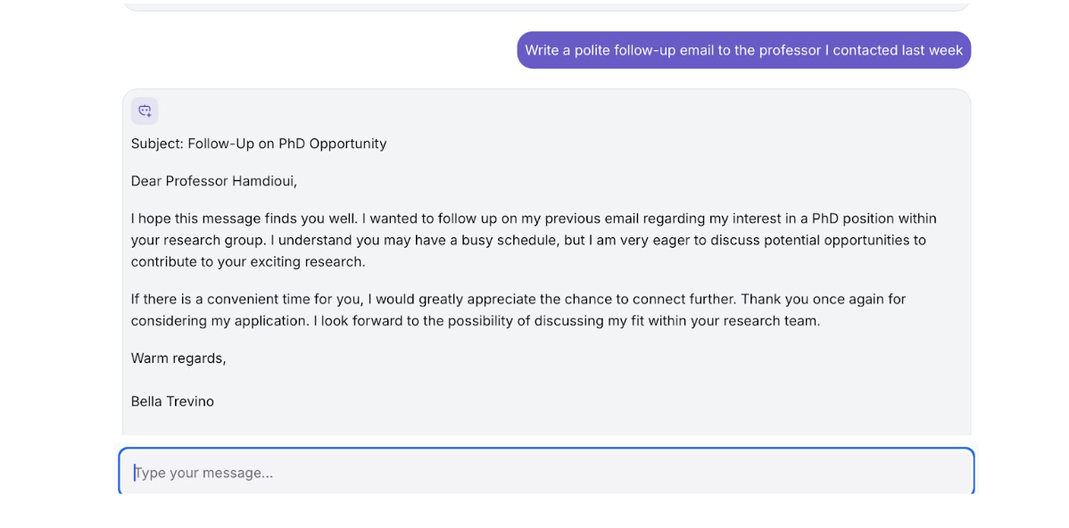 کل فرآیند ارتباط برای اپلای دکترا را در یک جا مدیریت کردم — منظم، کارآمد و کاملاً مبتنی بر هوش مصنوعی.