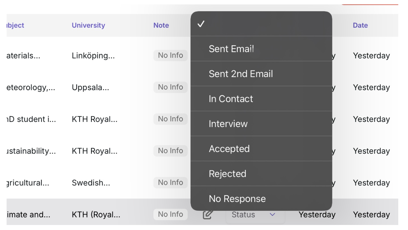 این کار کمک کرد فرآیندم را سازماندهی کنم — استادانی که قبلاً تماس گرفته بودم از بقیه جدا شدند.